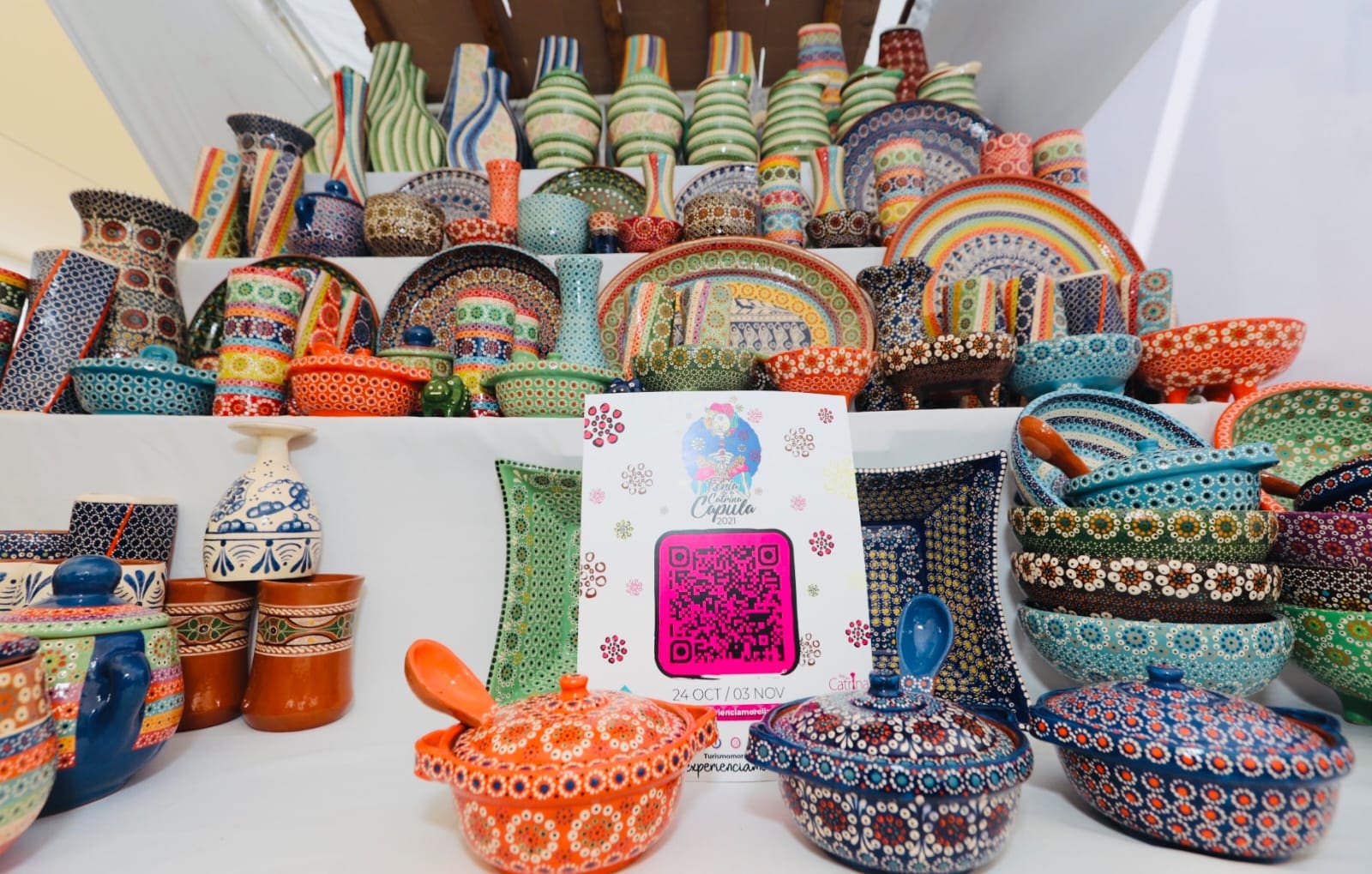 Morelia, Michoacán, 24 de octubre de 2021.- La Feria de la Catrina de Capula, abrió sus puertas este sábado para recibir a miles de familias que disfrutarán hasta el 3 de noviembre, de las mejores artesanías de barro, vajillas y las famosas catrinas.