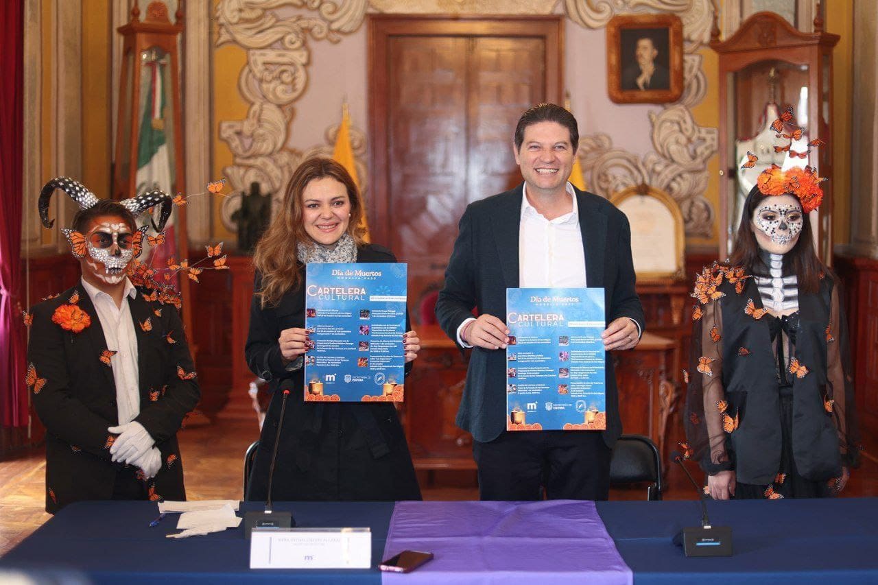 Morelia, Michoacán; 26 de octubre del 2023.- El Presidente Municipal, Alfonso Martínez Alcázar, presentó la activación cultural que vestirá a Morelia con la temática del Día de Muertos del 28 de octubre al 3 de noviembre, con el objetivo de resaltar nuestra cultura, las tradiciones y nuestra sociedad.