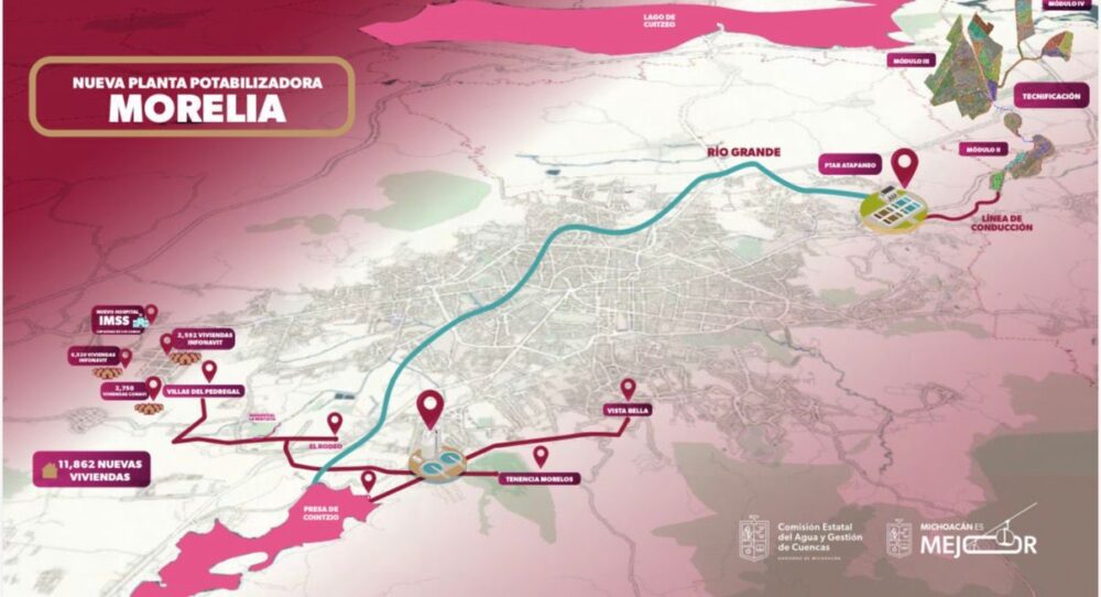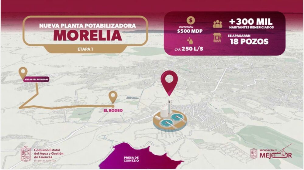 Por su parte, Olivia Cázares Arreola, coordinadora de la Comisión Estatal del Agua y Gestión de Cuencas (CEAC), detalló que la primera etapa de la planta tendrá una capacidad de procesamiento de 250 litros por segundo. La funcionaria precisó que la obra contempla una línea de conducción desde la presa de Cointzio hacia la planta, y de ahí hacia el oriente de la ciudad.