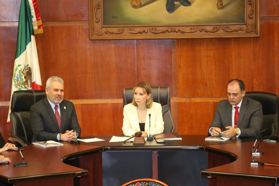 En el Palacio de Justicia, la magistrada presidenta Lizett Puebla Solórzano presentó el balance de actividades del ejercicio anterior ante el titular del Ejecutivo. Ramírez Bedolla reconoció el trabajo de las magistradas Swany Peña Reyes y Azucena Marín Correa, así como de los magistrados Carlos Enrique Verduzco Hurtado y Sergio Alberto Martínez Ocampo, en la tutela de los derechos ciudadanos.
