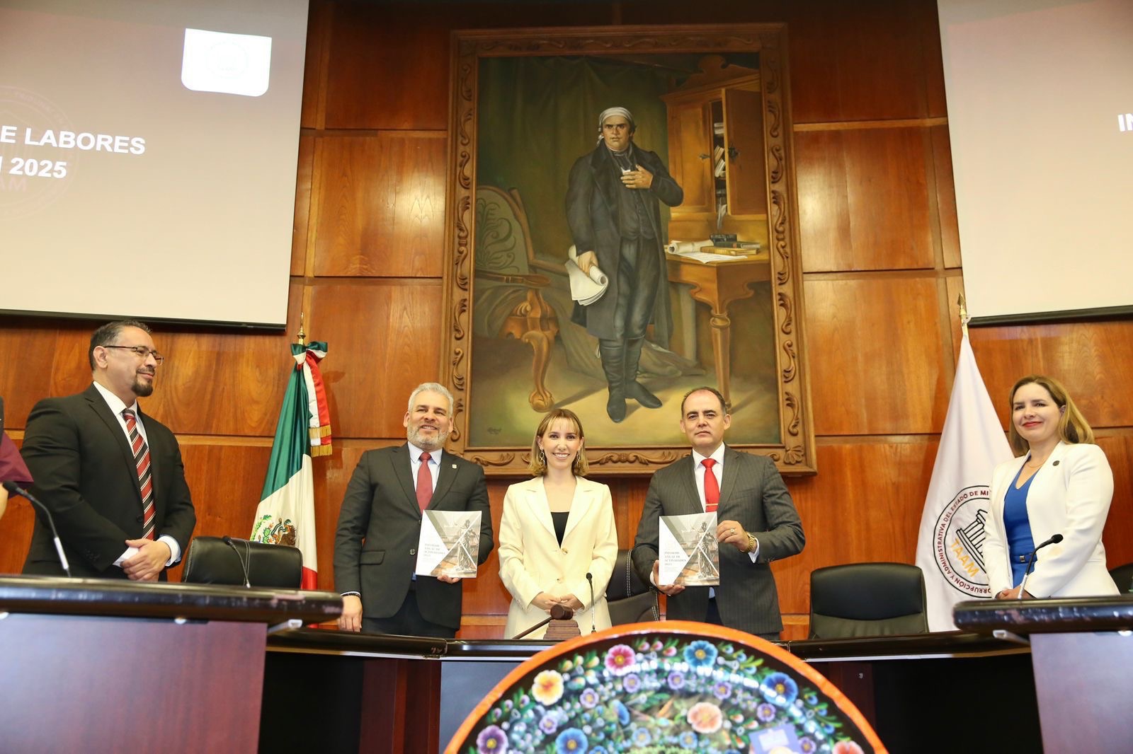 En el Palacio de Justicia, la magistrada presidenta Lizett Puebla Solórzano presentó el balance de actividades del ejercicio anterior ante el titular del Ejecutivo. Ramírez Bedolla reconoció el trabajo de las magistradas Swany Peña Reyes y Azucena Marín Correa, así como de los magistrados Carlos Enrique Verduzco Hurtado y Sergio Alberto Martínez Ocampo, en la tutela de los derechos ciudadanos.