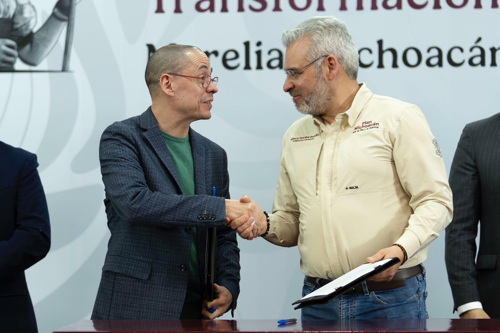 El gobernador Alfredo Ramírez Bedolla y el titular de la Agencia de Transformación Digital y Telecomunicaciones, José Antonio Peña Merino, formalizaron un convenio de colaboración orientado a la digitalización y simplificación de procesos administrativos entre el Gobierno de Michoacán y la administración federal.