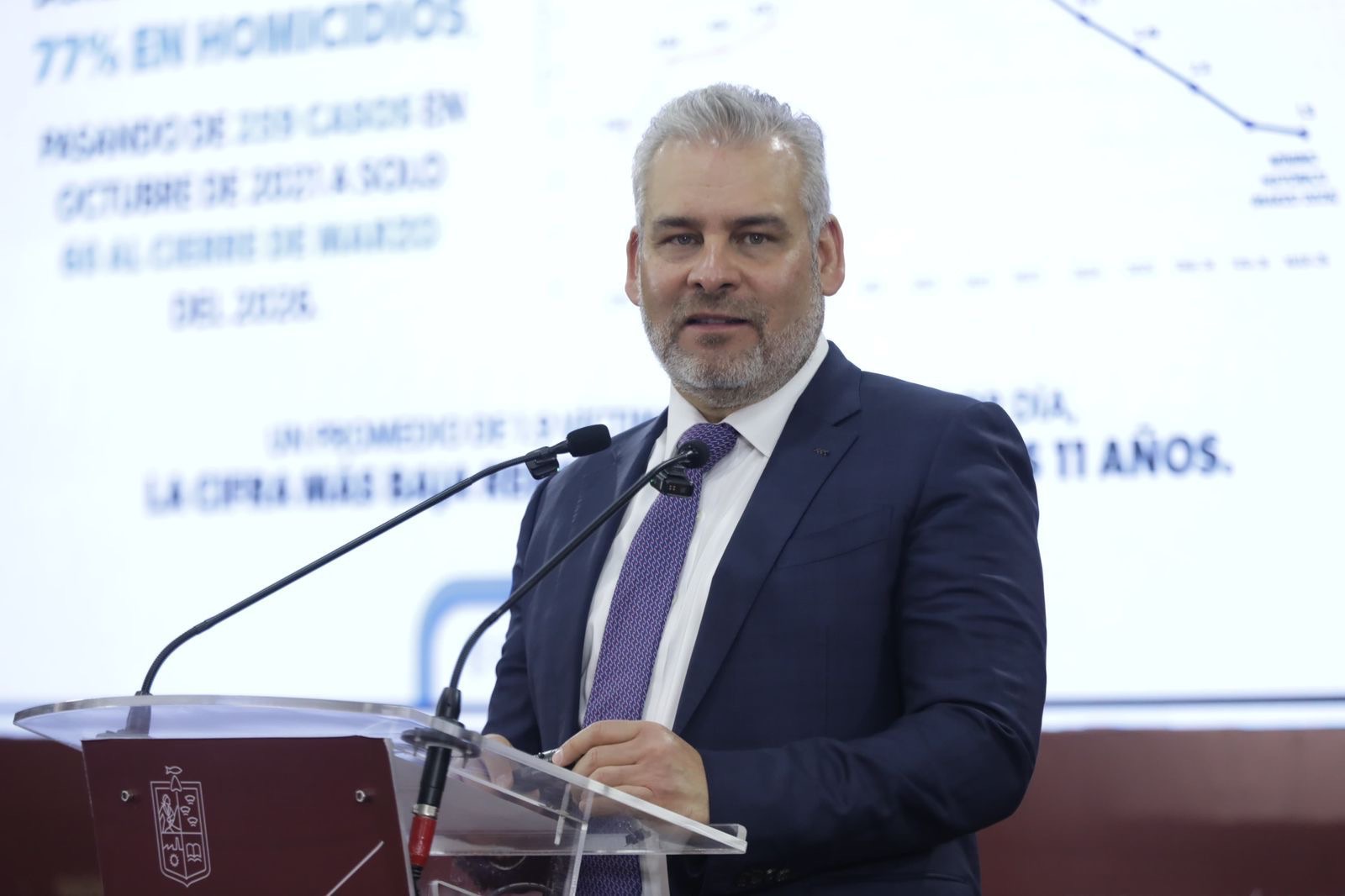 El gobernador Alfredo Ramírez Bedolla informó que el estado de Michoacán registró 60 casos de homicidio doloso al cierre del mes de marzo, lo que representa la cifra mensual más baja reportada en los últimos 11 años.