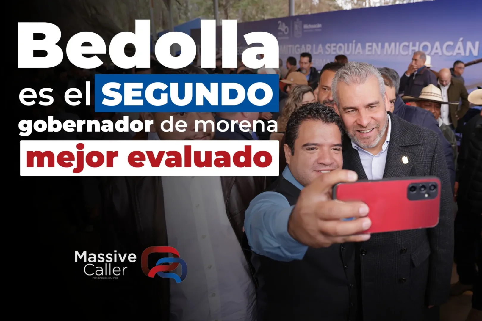 Morelia, Michoacán.- El gobernador de Michoacán, Alfredo Ramírez Bedolla se sitúa como el segundo gobernador mejor evaluado dentro de las filas de Morena, de acuerdo a la última encuesta de opinión de Massive Caller.