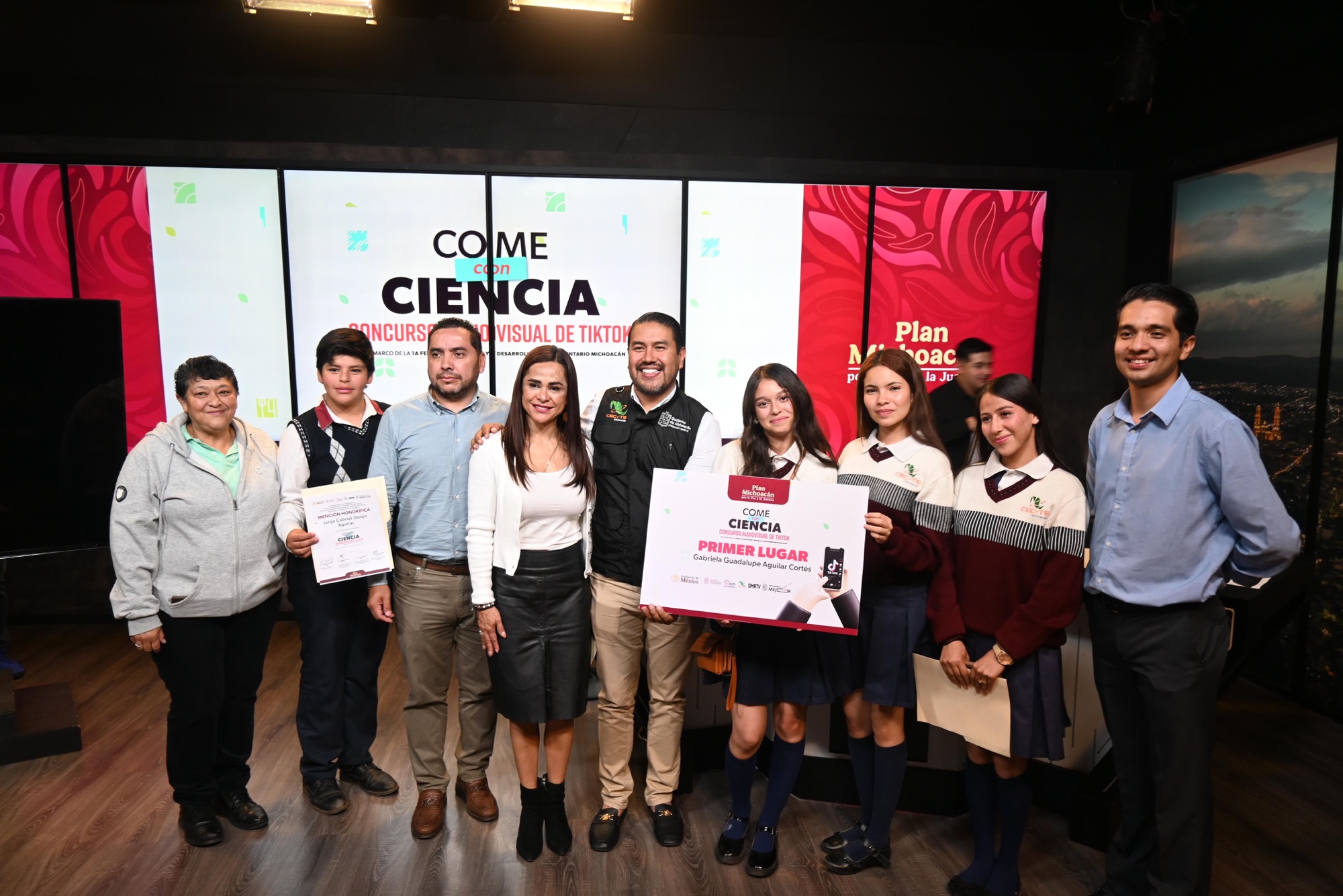 Las alumnas Gabriela Guadalupe Aguilar Cortés, María Fernanda Villa Cervantes y Dulce María Gallegos Sánchez, del Colegio de Estudios Científicos y Tecnológicos del Estado de Michoacán (Cecytem) plantel Tacámbaro, fueron galardonadas con la medalla de oro en el primer concurso audiovisual en TikTok “Come con Ciencia”. El concurso fue organizado por la Secretaría de Agricultura y Desarrollo Rural (Sader), el Instituto de Ciencia, Tecnología e Innovación (ICTI) y el Sistema Michoacano de Radio y Televisión (SMRTV).