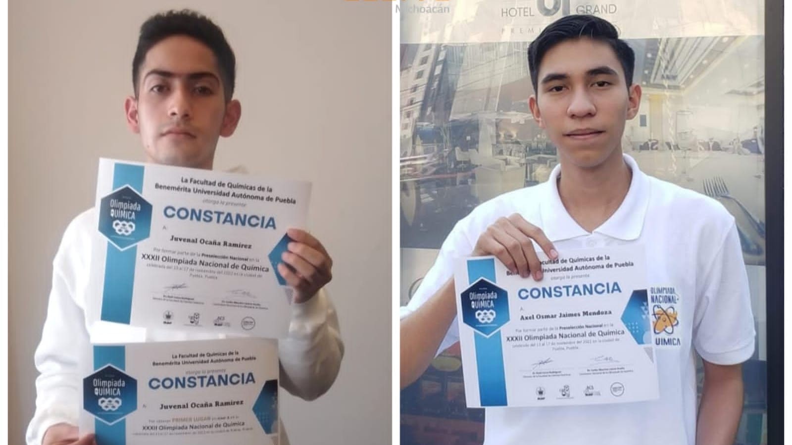 Ambos estudiantes participaron en la justa de ciencias, la cual se desarrolló del 13 al 17 de noviembre, siendo integrantes de la selección Estatal de Química.