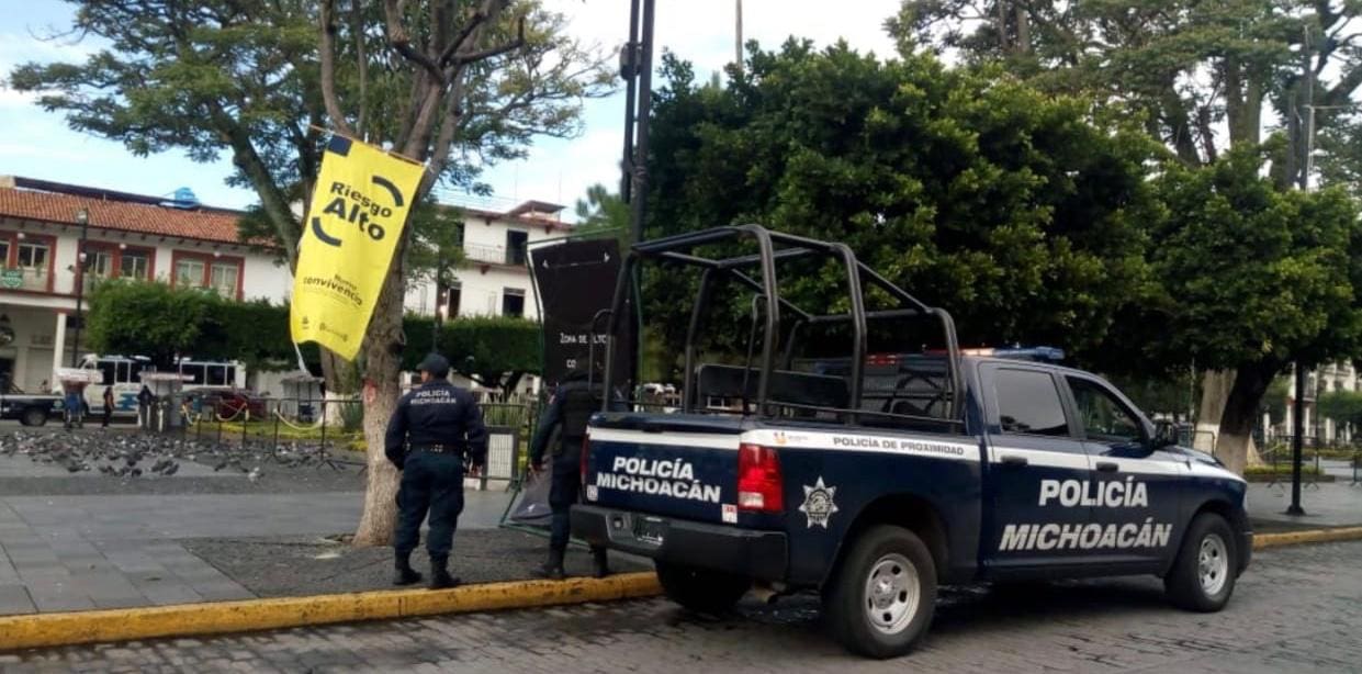 Ante Bandera Amarrilla, efectúa SSP tareas de prevención contra COVID-19 en Uruapan
