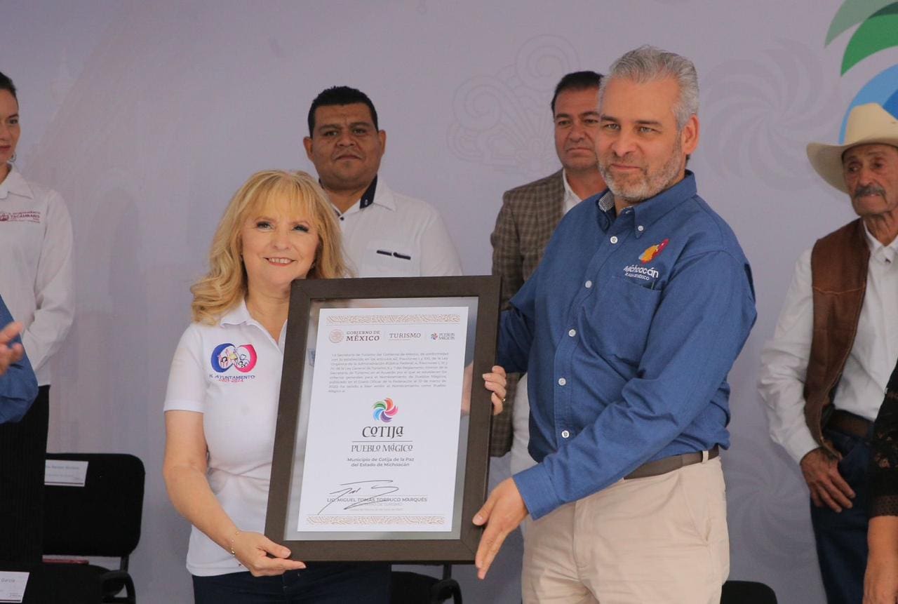Durante la entrega del reconocimiento de Pueblo Mágico a Cotija, el mandatario estatal destacó que al tener estos nombramientos otorgados por la federación, se obliga a reforzar acciones para reactivar las actividades productivas, culturales y artísticas de cada localidad.