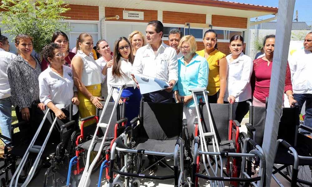 “Señor Gobernador con su apoyo hacemos la entrega de más de un millón de pesos en insumos que son para personas con discapacidad; 10 aparatos auditivos; 6 equipos de medicina alternativa; 55 sillas de ruedas; 33 andaderas; 32 bastones de apoyo; 31 bastones para débiles visuales; 28 muletas; 8 ludotecas y 88 cunas”, informó la titular del DIF Estatal.