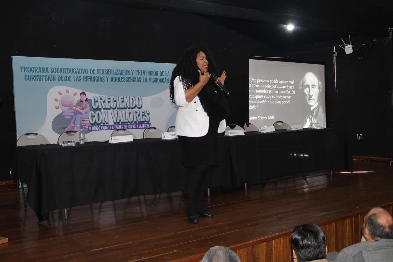 Morelia, Michoacán, 23 de enero de 2024.- Para potenciar la conciencia moral, la responsabilidad cívica y el combate a la corrupción desde las infancias y adolescencias, inició el programa Creciendo con Valores: tejiendo valores a través del cuento y la lectura, el cual se expandirá a 14 escuelas de educación media superior de 10 municipios de Michoacán.
