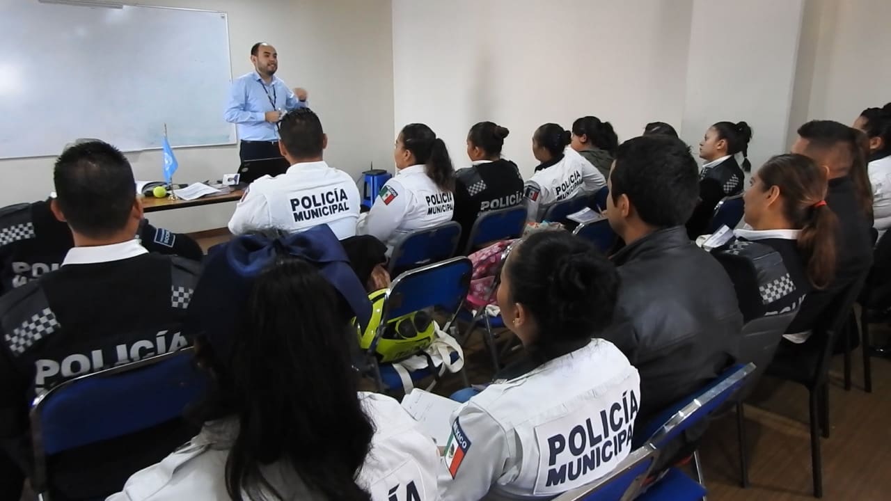 La comisionada municipal de Seguridad Ciudadana, Julisa Suárez Bucio, brindó la bienvenida al instructor de la ONU, Arturo Tena Huerta, quien durante los siguientes meses capacitará a los agentes sobre perspectiva de género, Derechos Humanos y atención de víctimas, con el objeto de atender oportunamente los casos de violencia familiar, contra la mujer, adultos mayores y la comunidad de diversa sexual.