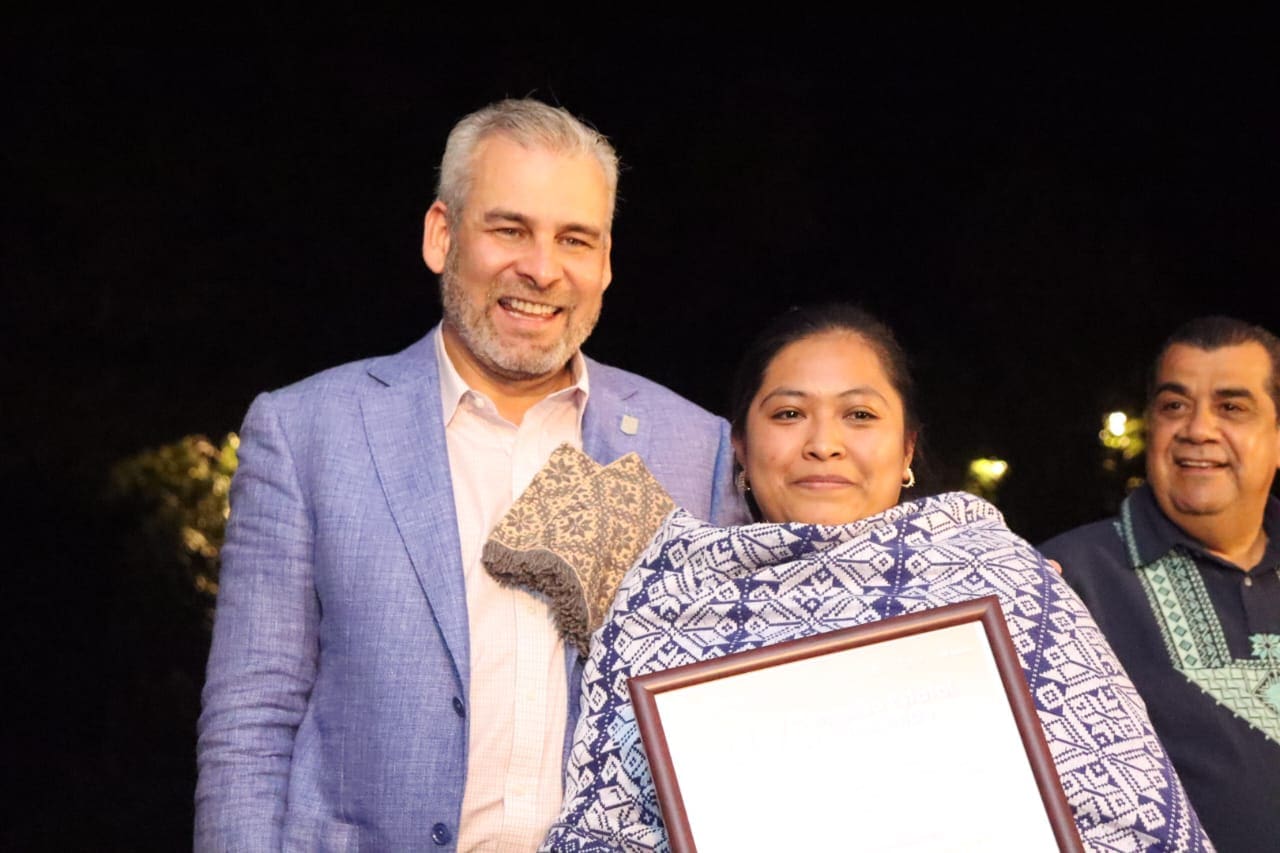 “Me siento muy feliz de haber ganado este premio tan importante, sólo había ganado premios especiales y primeros lugares, y esto me motiva a seguir participando y haciendo mejores piezas”, compartió la maestra artesana al tener en sus manos el Premio Especial Teresa Dávalos, en la rama textil.