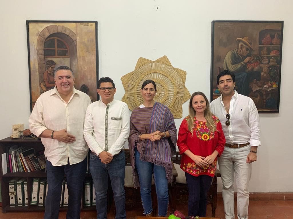 En reunión de trabajo el director general del IAM, Cástor Estrada Robles, la secretaria de Cultura de Michoacán, Gabriela Molina Aguilar, el director de Experiencias de Palacio de Hierro, Rodrigo Torres Vázquez y la subdirectora de Comercialización del IAM, Estrella Acosta Tapia, analizaron la logística del evento y especificaron actividades a realizar durante esta muestra artesanal.