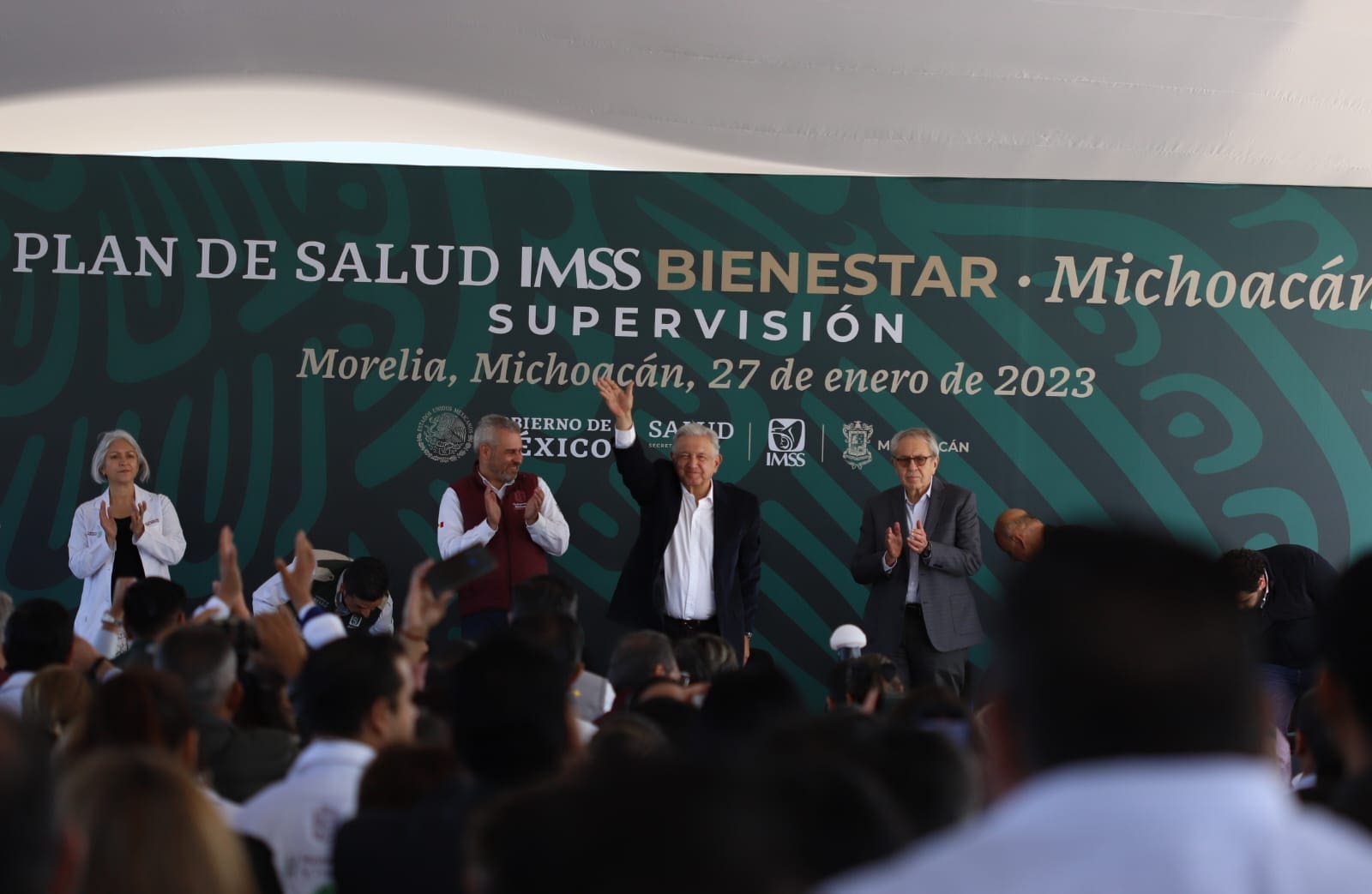 En su visita a la capital michoacana para presentar el Plan de Salud del IMSS Bienestar, el Presidente explicó que el 85 por ciento de los hogares en el estado reciben un apoyo económico del presupuesto público, a través de los programas del Bienestar.