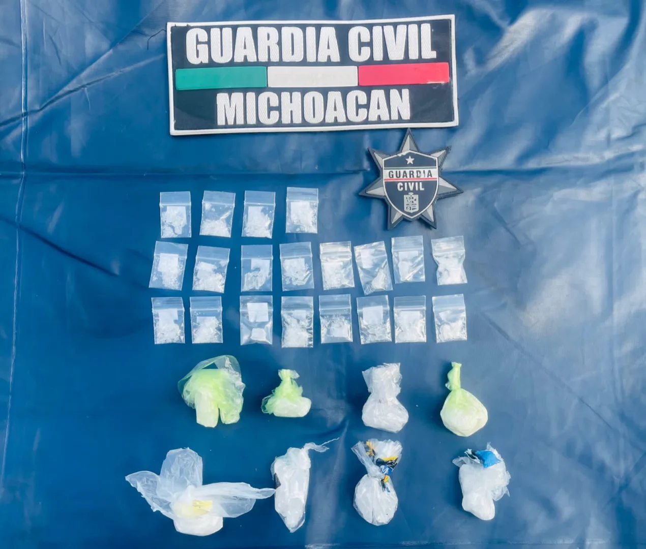 Uruapan, Michoacán, 28 de diciembre del 2022.- Derivado de los patrullajes de vigilancia efectuados en el municipio de Uruapan, elementos de la Secretaría de Seguridad Pública (SSP), lograron el aseguramiento de tres féminas y un masculino en posesión de sustancia granulada, al parecer metanfetamina, así como de una motocicleta que contaba con reporte de robo.