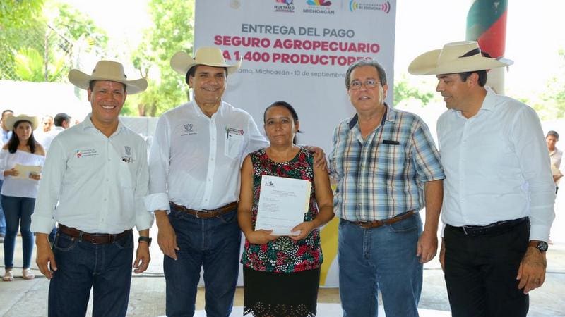 Huetamo, Michoacán.- El Gobierno de Michoacán mantiene su compromiso de atender a los productores afectados por los siniestros climatológicos de 2018 con la entrega de mil 400 pólizas de seguro en el municipio de Huetamo.