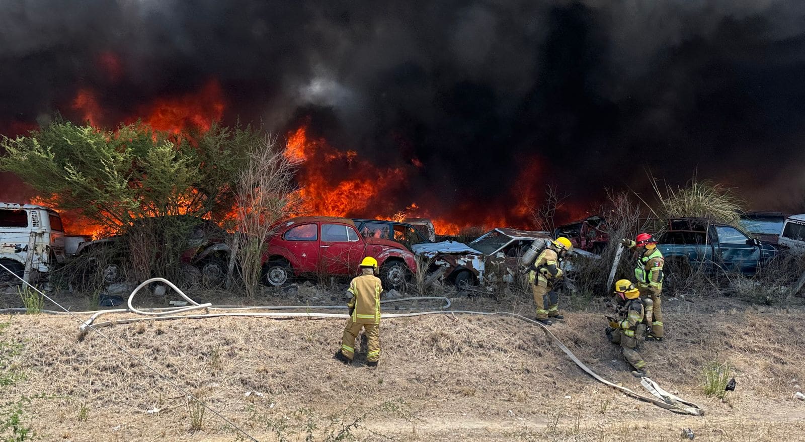 Poco después de las 13:00 horas, las corporaciones de auxilio fueron alertadas tras suscitarse un incendio en el corralón de la Secretaría de Seguridad Pública estatal, ante ello se desplegaron diversas corporaciones de bomberos, además de los elementos de la Coordinación Estatal de Protección Civil.