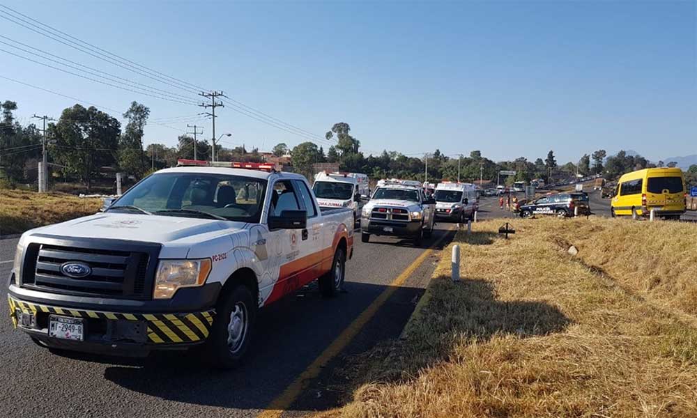 Lo anterior, debido a un accidente entre un vehículo particular y un camión, en la carretera Morelia-Pátzcuaro, kilómetro 14, a la altura de Santiago Undameo.
