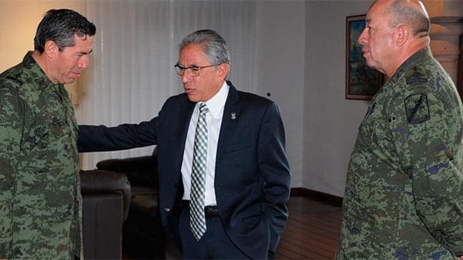 Antes de iniciar la reunión, el gobernador Salvador Jara Guerrero agradeció a los comandantes de las zonas militares con sede en Michoacán por su rápida intervención para auxiliar a las personas afectadas por la contingencia climática del pasado fin de semana. Resaltó que el apoyo de las fuerzas castrenses a la sociedad en esos momentos es fundamental, ya que de esa manera los ciudadanos se sienten más seguros, y tienen mayor confianza de evacuar sus viviendas ante situaciones de riesgo.