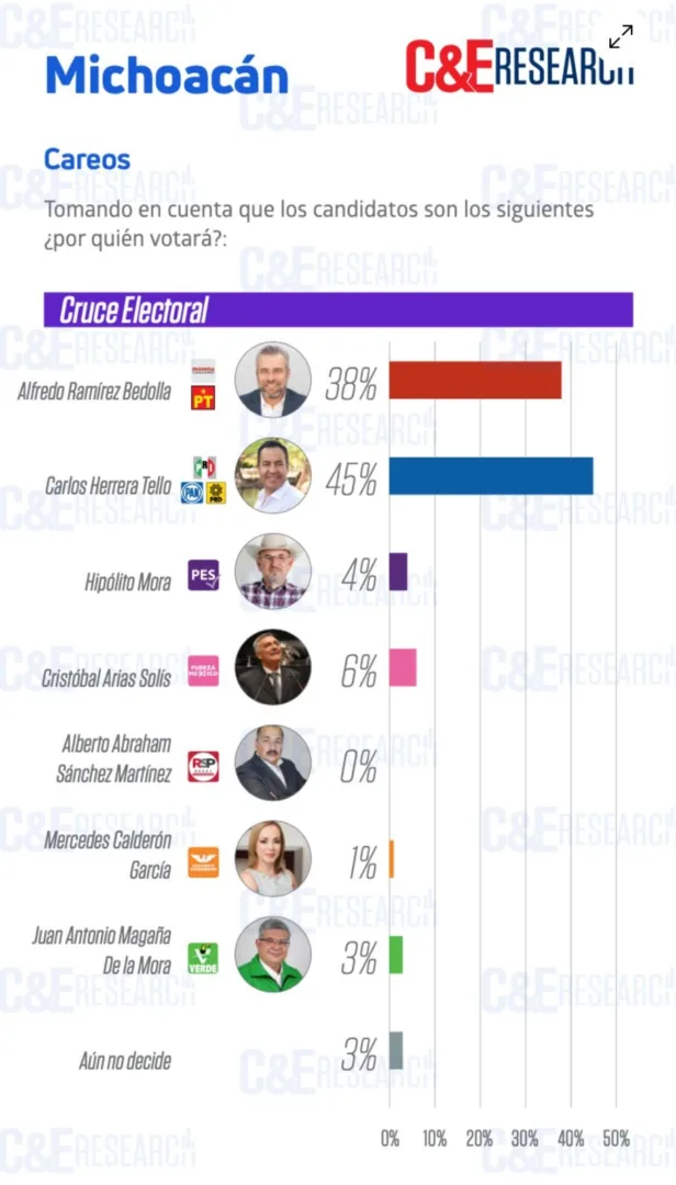 Avanza Carlos Herrera en las preferencias electorales rumbo a la gubernatura de Michoacán según C&E Research