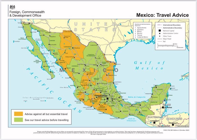 Puedes consultar la alerta de viaje en el siguiente enlace: https://www.gov.uk/foreign-travel-advice/mexico