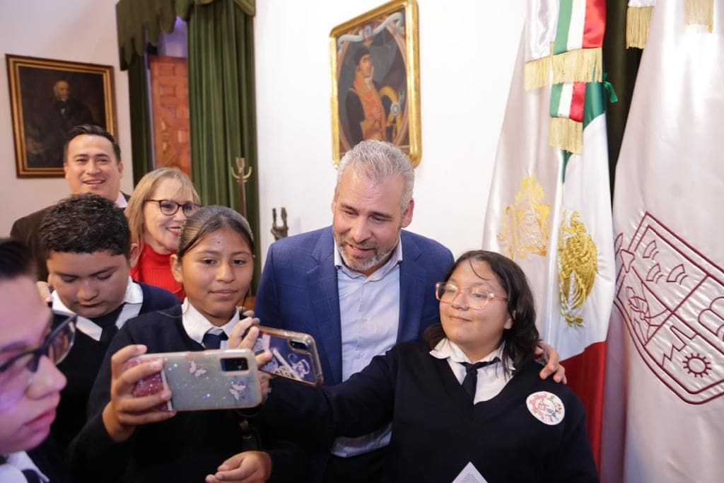 Morelia, Michoacán, 16 de noviembre de 2023.- Para que la población de Michoacán, visitantes, estudiantes y turistas puedan disfrutar de las obras de arte que se encuentran en la sede del Poder Ejecutivo, el mandatario estatal Alfredo Ramírez Bedolla arrancó el programa Puertas Abiertas en el Palacio de Gobierno.
