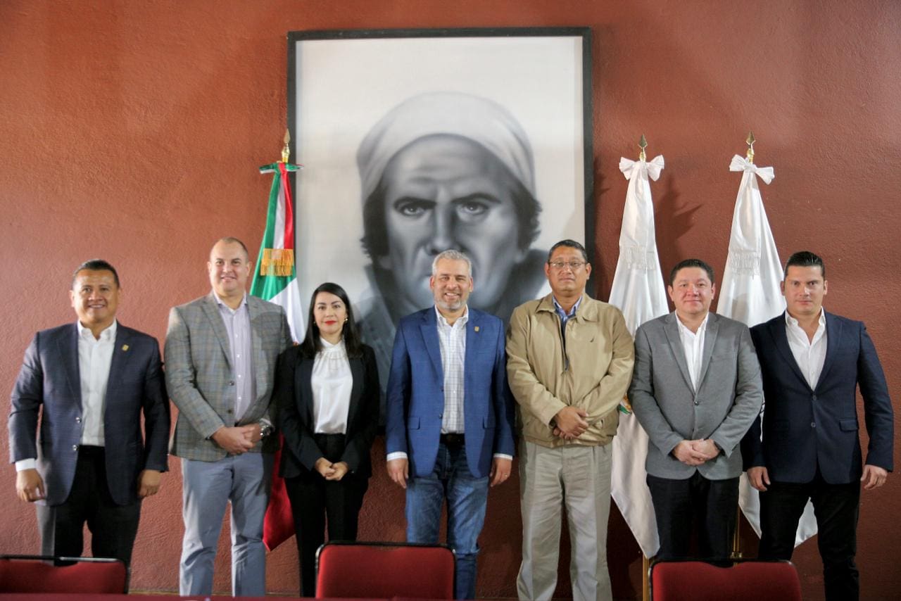 Morelia, Michoacán, 17 de febrero del 2023.- El gobernador Alfredo Ramírez Bedolla y los presidentes del IEM, TEEM, CEDH, TJAM e IMAIP, refrendaron el compromiso de construir una agenda conjunta para avanzar en temas pendientes del legislativo y justicia administrativa, así como de respeto a los derechos humanos.