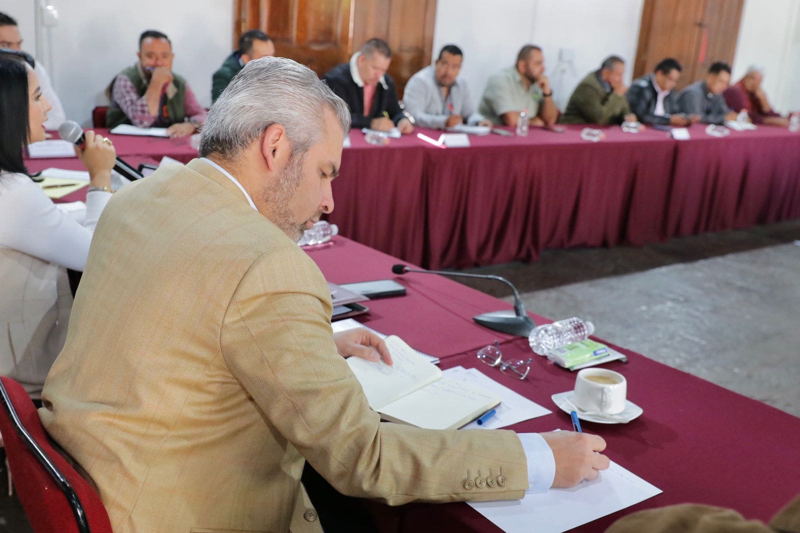 Morelia, Michoacán, 1 de diciembre del 2022.- El gobernador Alfredo Ramírez Bedolla y líderes del sector transportista, instalaron mesa de trabajo para definir acciones en materia de movilidad, modernización y mejora al servicio del transporte público estatal.