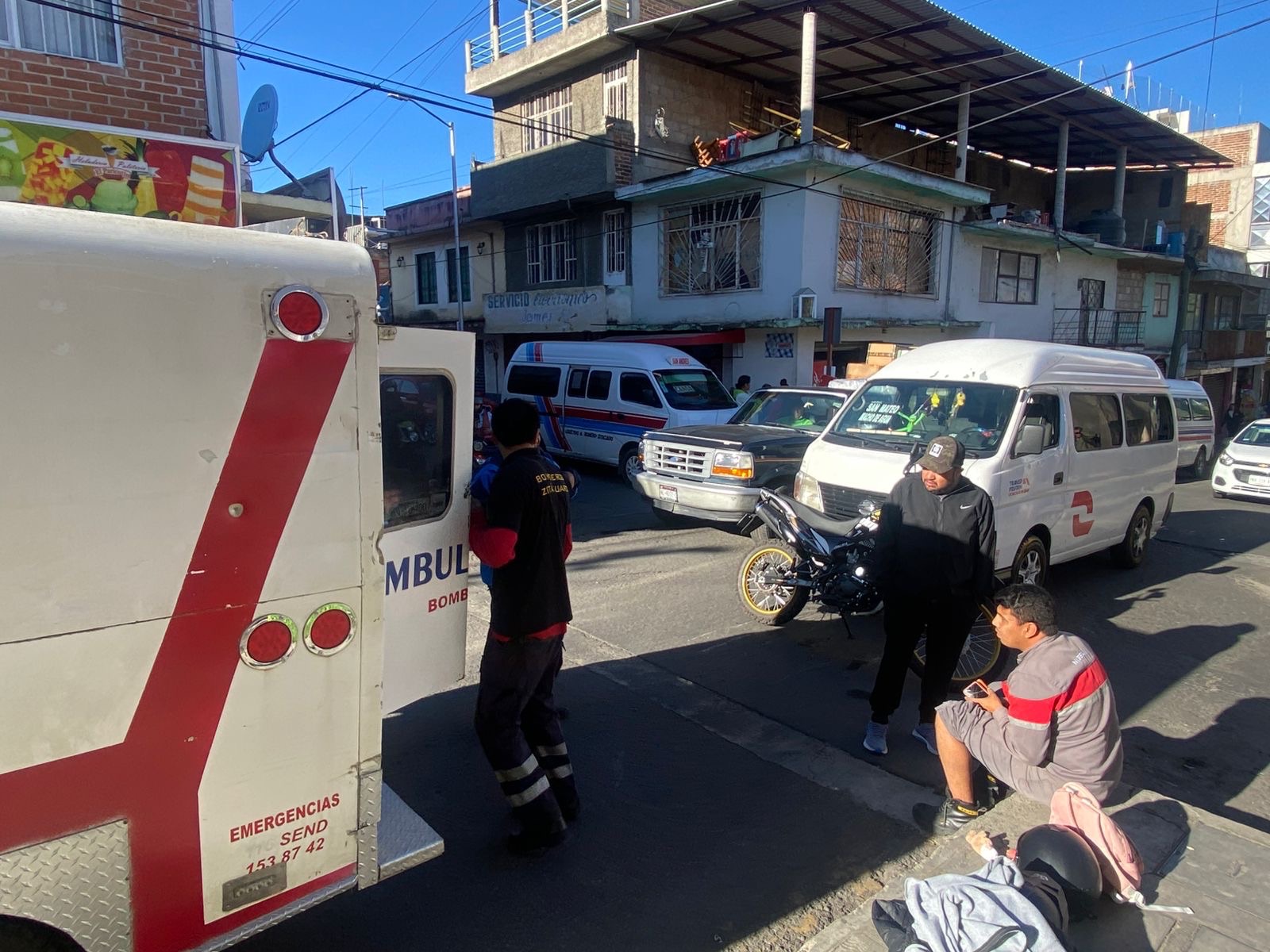 Por su parte, el conductor de la motocicleta presentó heridas abrasivas en la región de la tibia y el peroné de la pierna izquierda. Tras la valoración de los bomberos, el masculino decidió permanecer en el lugar del accidente a la espera de las autoridades correspondientes para el deslinde de responsabilidades. El conductor de la unidad de transporte público resultó ileso tras la revisión del personal paramédico.