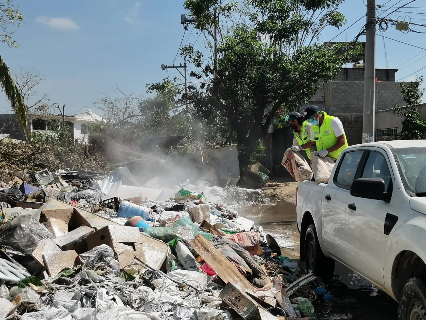Estas brigadas están conformadas por personal capacitado en emergencias y desastres de la Comisión Estatal para la Protección contra Riesgos Sanitarios (Coepris), y se encargan de aplicar 2 mil 600 kilos de cal por el Sector Renacimiento, para evitar 20 focos infecciosos generados por ramas, basura y fauna muerta que arrastró el huracán Otis.