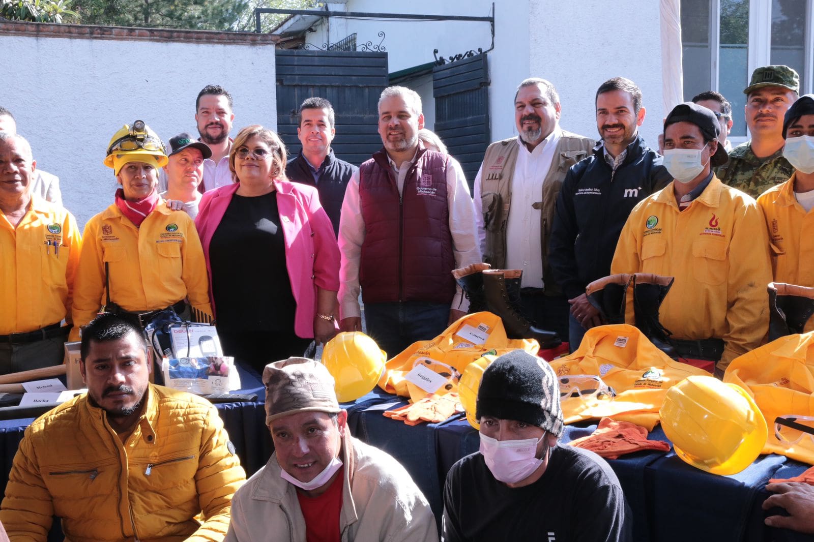 Morelia, Michoacán, 24 de febrero de 2023.- El gobernador Alfredo Ramírez Bedolla, entregó equipo de seguridad, herramientas y prendas a más de 70 brigadistas contra incendios forestales en Michoacán.