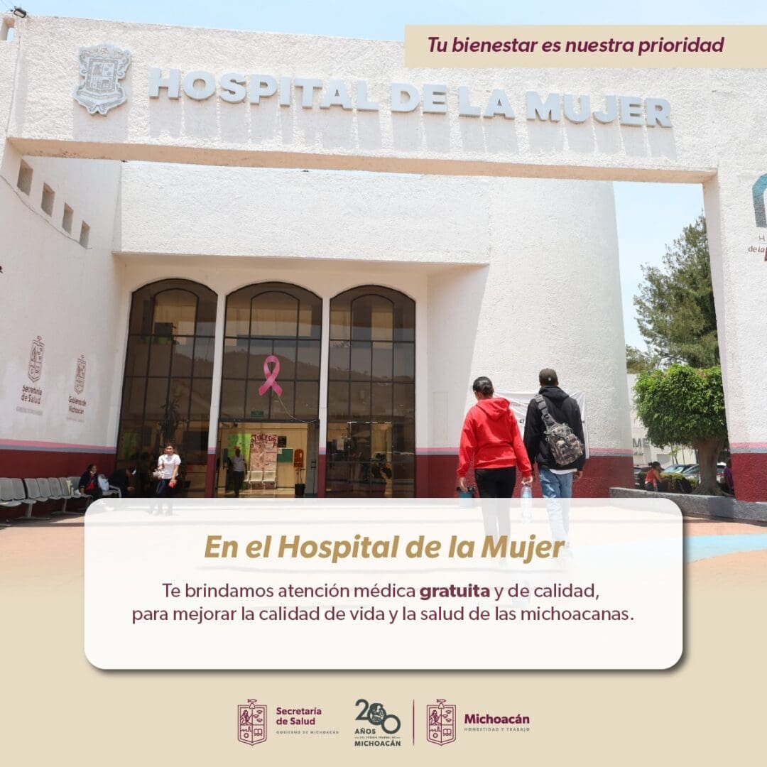 Morelia, Michoacán, 24 de agosto de 2024.- En Michoacán, todas las mujeres sin seguridad social pueden recibir atención médica gratuita con 20 especialidades en el Hospital de la Mujer de Morelia, unidad de salud que atiende al año a más de 40 mil pacientes de todo el estado.