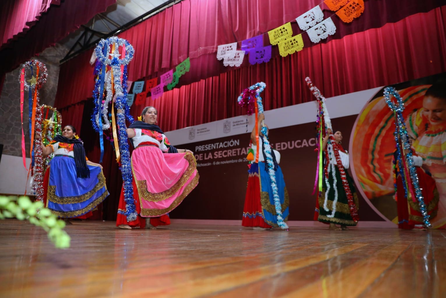 Morelia, Michoacán, 7 de noviembre del 2022.- En un ambiente festivo, familiar y con un lleno total, debutó el Ballet Folklórico de la Secretaría de Educación del Estado (SEE), donde la titular de la dependencia, Yarabí Ávila González, señaló que buscará que se institucionalice el grupo con el propósito de que se garantice su permanencia.