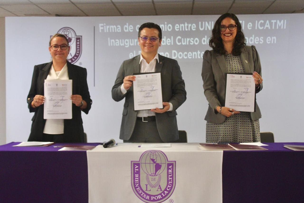Morelia, Michoacán, 10 de julio de 2023.- Con el compromiso de brindar cursos de calidad en todas las regiones que abarca el Instituto de Capacitación para el Trabajo del Estado de Michoacán (Icatmi), se llevó a cabo la firma del convenio tripartito con el Instituto de Ciencia, Tecnología e Innovación (ICTI), y la Universidad Latina de América (UNLA), para impartir el curso de Habilidades Digitales en el Entorno Docente, a la planilla del instituto.