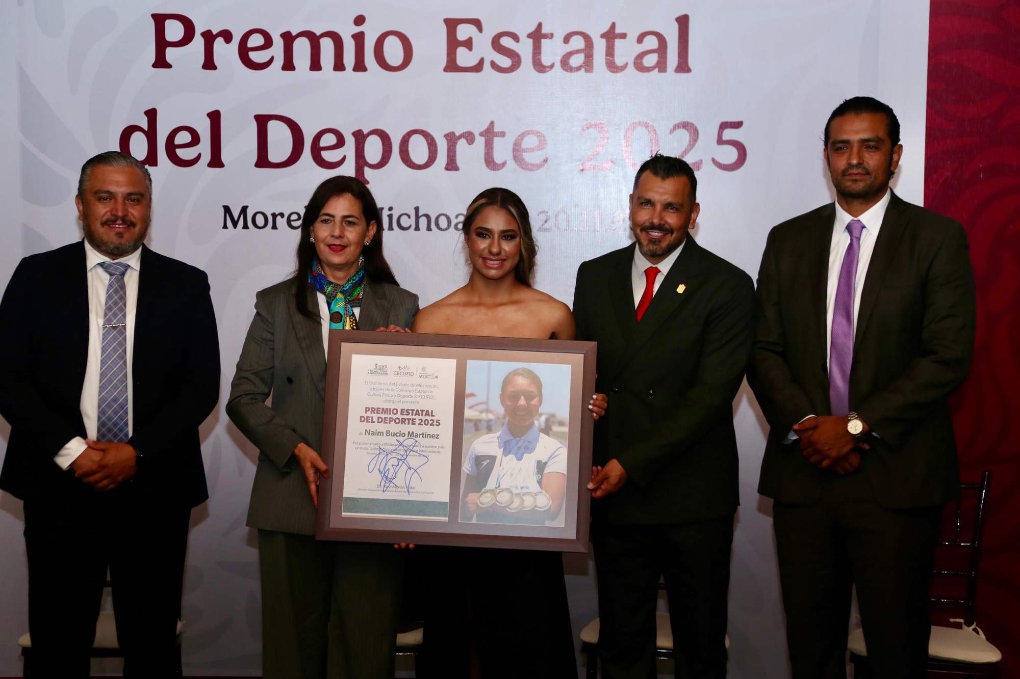 La Comisión Estatal de Cultura Física y Deporte (Cecufid) entregó el Premio Estatal del Deporte 2025 a la patinadora Naim Bucio Martínez, según información de la dependencia. La Asociación Michoacana de Judo también recibió el galardón en la categoría de Protección o Impulso a la Práctica de los Deportes, reportó la Cecufid.