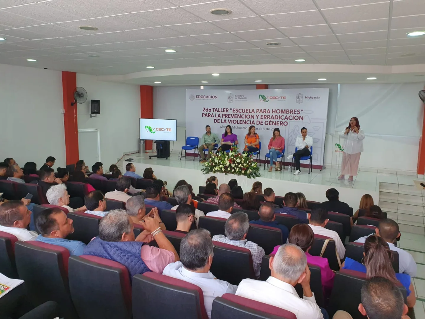 Morelia, Michoacán, 21 de abril de 2023.- Más de 70 docentes, directivos y coordinadores del Colegio de Estudios Científicos y Tecnológicos del Estado de Michoacán (Cecytem), participan en la segunda etapa del curso Escuela para hombres, para prevenir y erradicar la violencia de género en los 93 planteles que conforman el subsistema educativo.