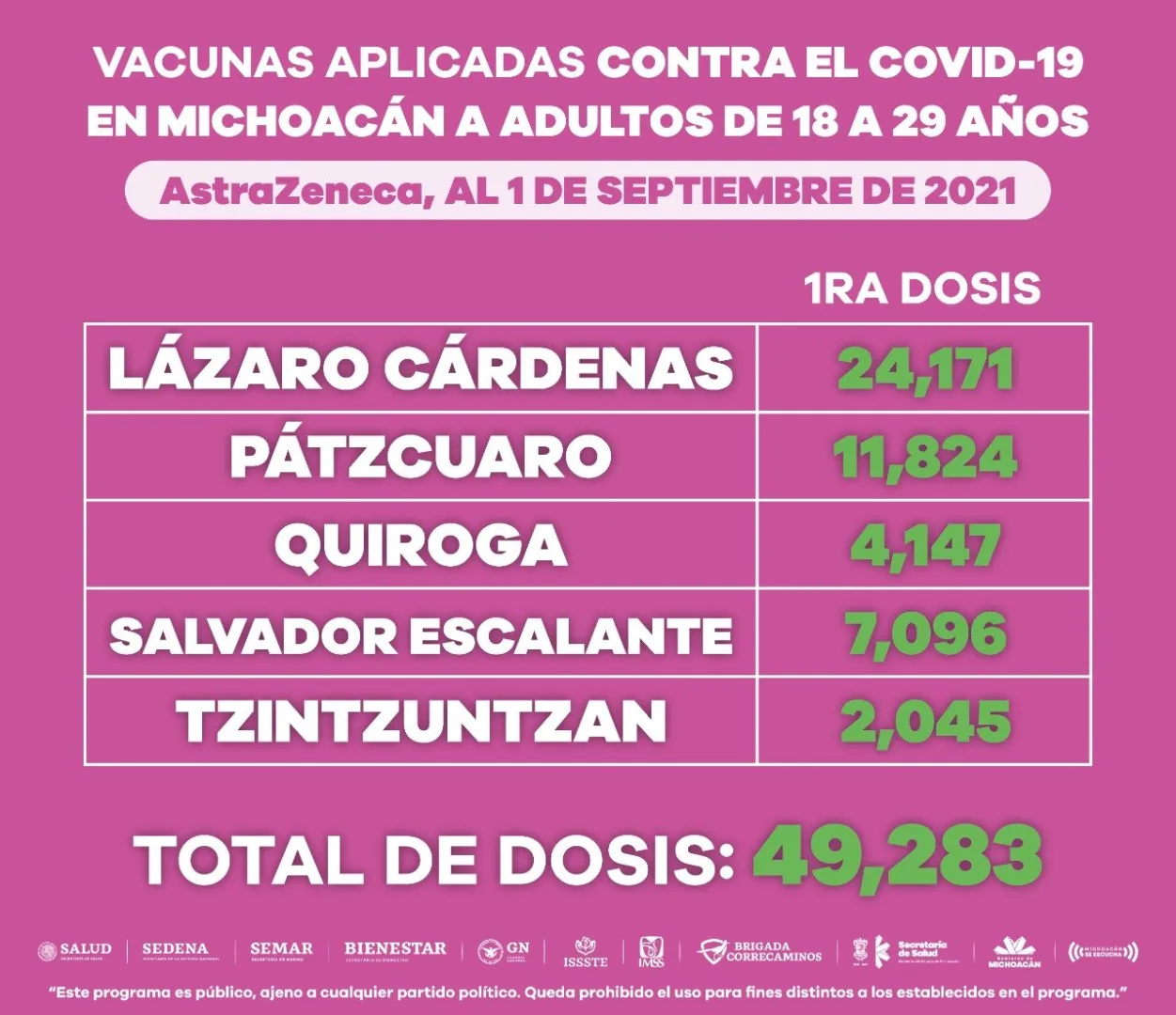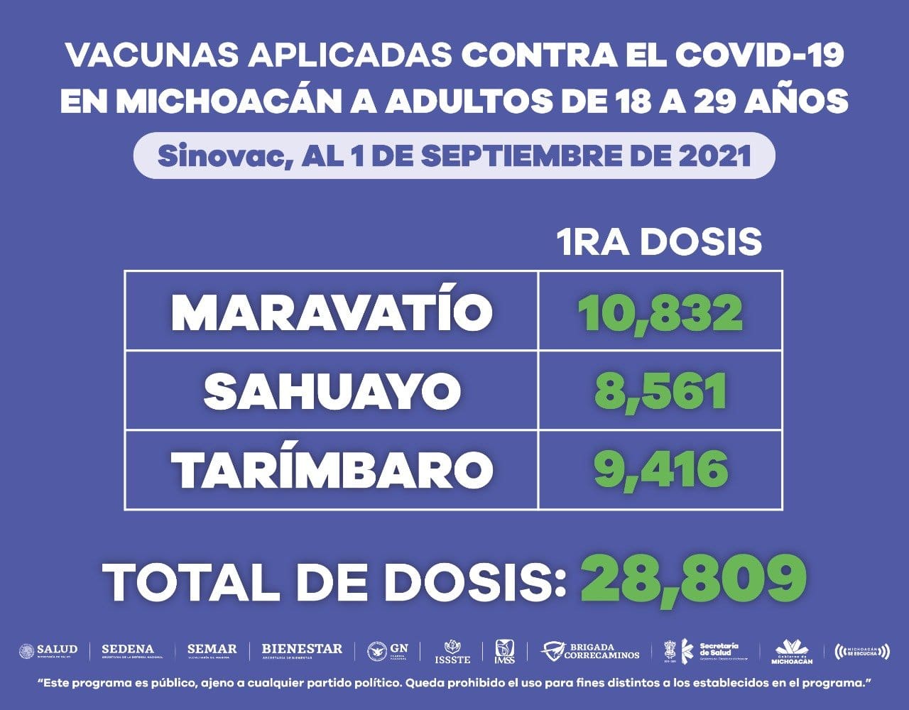 Cerca de 3 millones de vacuna anti COVID-19 se han aplicado en Michoacán