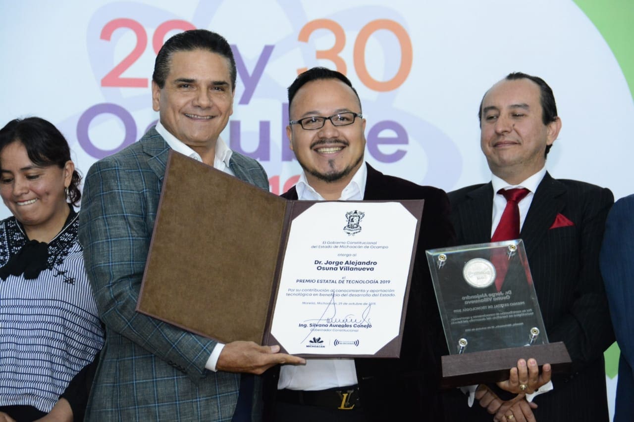 El mandatario, Silvano Aureoles Conejo, también encabezó la entrega de los seis Premios Estatales de Ciencia, Tecnología e Innovación, que constituyen el máximo galardón que otorga Michoacán a quienes desde su territorio, contribuyen a la evolución del conocimiento, para beneficio de México y del mundo.