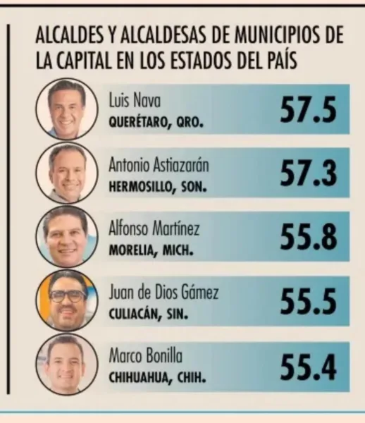El estudio correspondiente al mes de diciembre de la casa encuestadora Mitofsky, coloca al Alcalde de Morelia en la tercera posición, arriba de presidentes y presidentas municipales de ciudades como Guadalajara, Culiacán, Chihuahua y Mérida, por mencionar algunos.