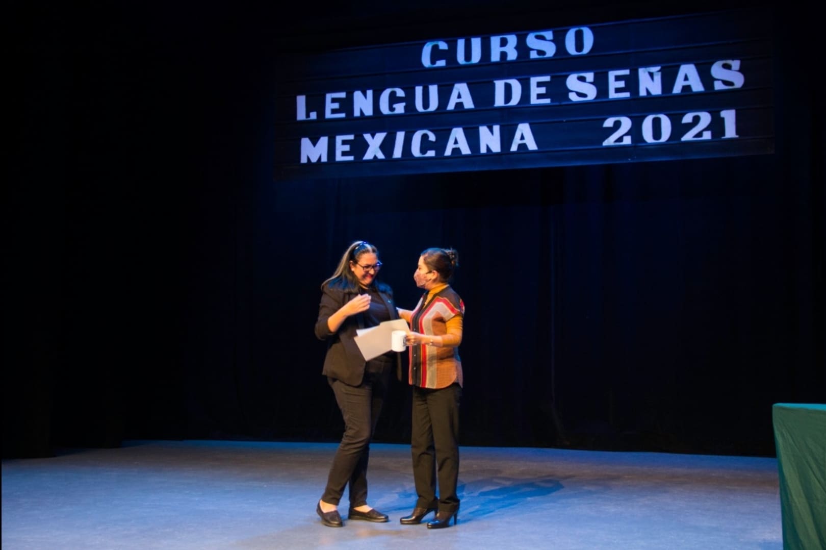 En tanto, la promotora e instructora de dichos cursos, Nancy G. Buenrostro Cortés, visiblemente emocionada, recibió un reconocimiento especial por su labor de inclusión dentro de la institución para con pacientes, usuarios y familiares de personas con sordera.