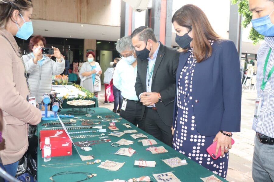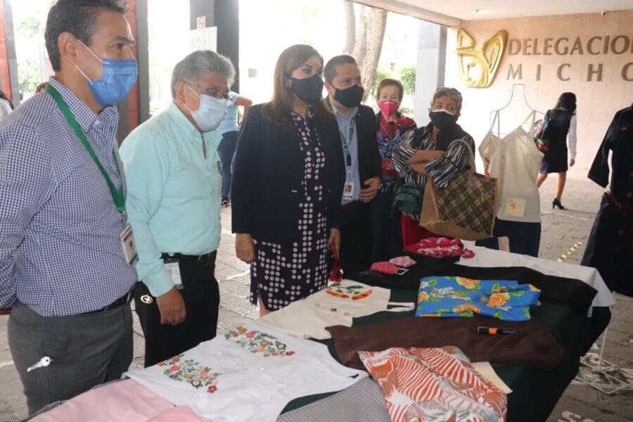 Acompañada del titular de Salud en el Trabajo y Prestaciones Económicas y Sociales, maestroHéctor Vargas Ortíz, y del jefe del departamento de prestaciones sociales, Alfredo Tovar Medina, recorrió la muestra montada en el exterior principal del Teatro “Stella Inda” de Morelia, relativa a:manualidades, corte y confección, bisutería, pintura, alimentación saludable, promoción de la salud, bordado, repujado y activación física, entre otras.