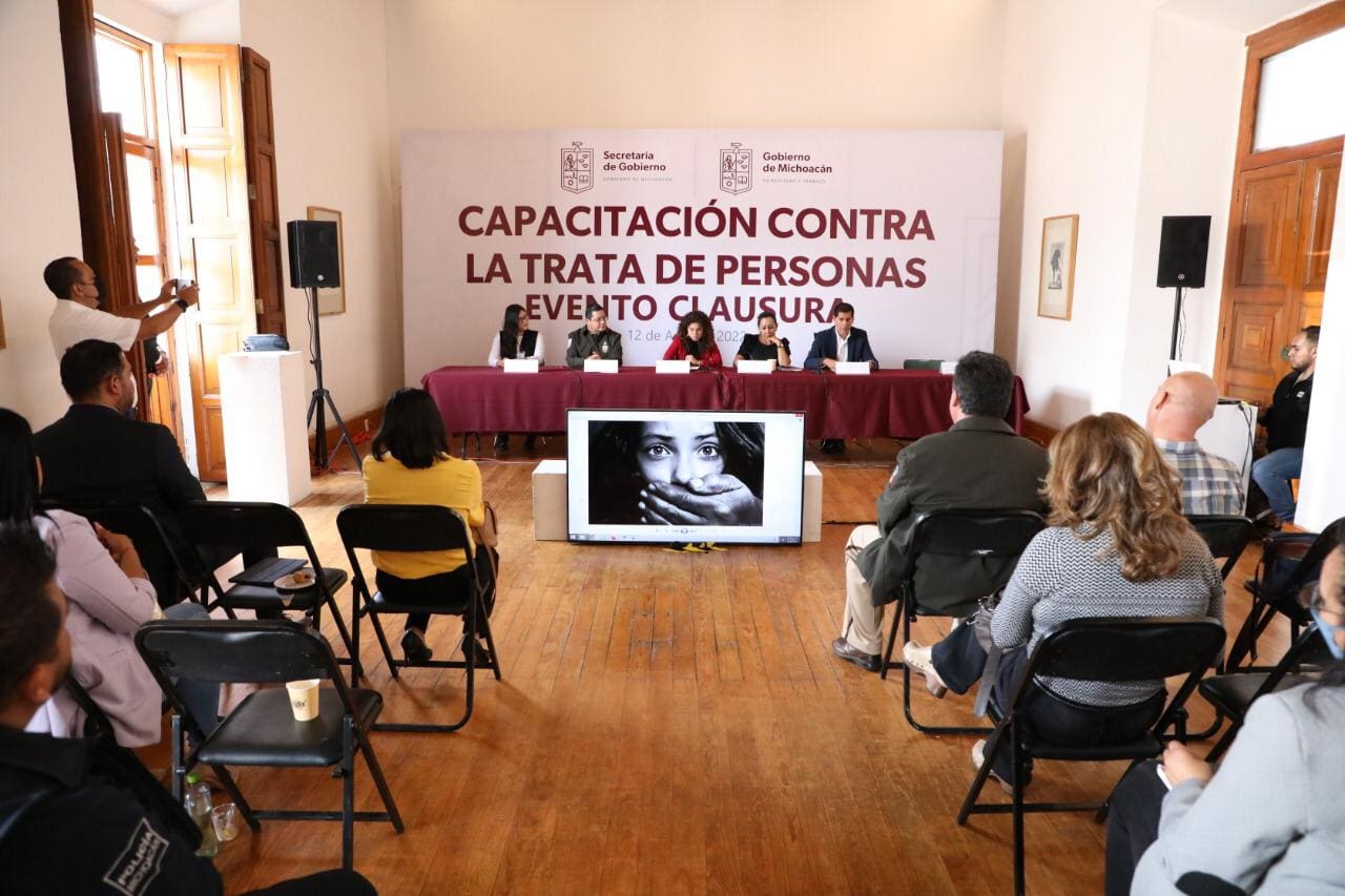 Para tal efecto, se contó con la participación como ponentes de José Carmen García Mendiola, titular de la Unidad de Atención de Trata de Personas y de María Guadalupe Lachino Revuelta ambos de la Fiscalía General del Estado de Michoacán.