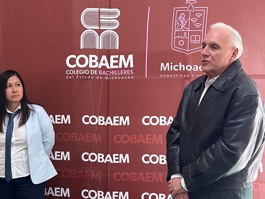 Morelia, Michoacán, 24 de noviembre de 2023.- El director general del Colegio de Bachilleres del Estado de Michoacán (Cobaem), David Alfaro Garcés, refrendó el compromiso de tener espacios educativos libres de violencia y de discriminación hacia las mujeres.