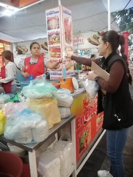 El objetivo de la acción fue supervisar las condiciones de higiene en los puestos semifijos de comida instalados con motivo de las próximas festividades guadalupanas.