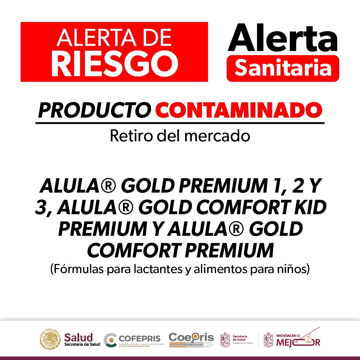 La medida preventiva aplica a las fórmulas ALULA® GOLD PREMIUM 1, 2 y 3, ALULA® GOLD COMFORT KID PREMIUM y ALULA® GOLD COMFORT PREMIUM, importadas de Francia, debido a la posible presencia de toxina cereulida, producida por el microorganismo Bacillus cereus, detectada en uno de los ingredientes utilizados en su elaboración.
