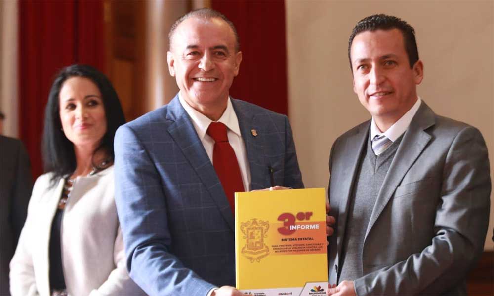 Morelia, Michoacán.- En cumplimiento a la Ley por una Vida Libre Violencia para las Mujeres en el Estado de Michoacán, el Gobierno del Estado remitió este día el Tercer Informe Anual de las Políticas Públicas y Acciones Gubernamentales que se realizan de manera transversal, integral y con estrategia en contra de la violencia a las mujeres por razones de género.