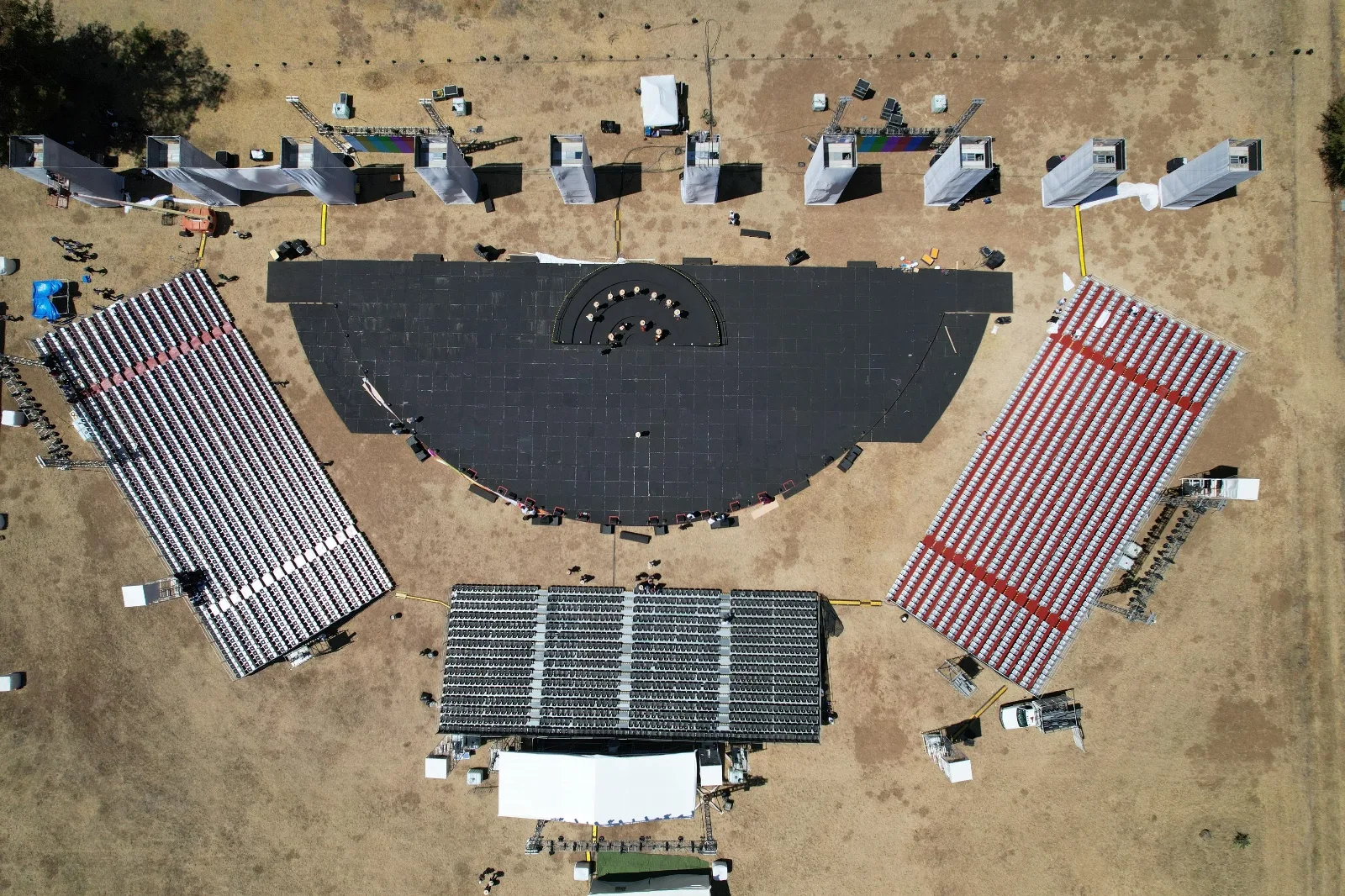 A través de redes sociales, la Secretaría de Turismo de Michoacán (Sectur) mostró fotografías donde el montaje del escenario ya puede verse avanzado en la zona arqueológica de Las Yácatas, en Tzintzuntzan, donde mañana jueves 14 de marzo comienzan las funciones con la presentación especial para las comunidades originarias.