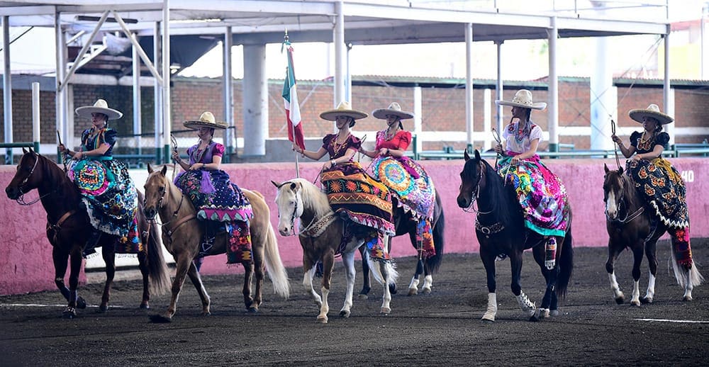 Comenzó todo con los honores a la Bandera de rigor, realizados por la escolta charra conformada por bellas señoritas ataviadas de china poblana, encabezada por María Fernanda Color, María José Guzmán Sánchez Tapia, Ángela y Alejandra Cano, María José Villalobos y Dirvana Color, acompañadas por los compases de la Banda de Guerra del 17/o. Batallón de Infantería del Ejército Mexicano.