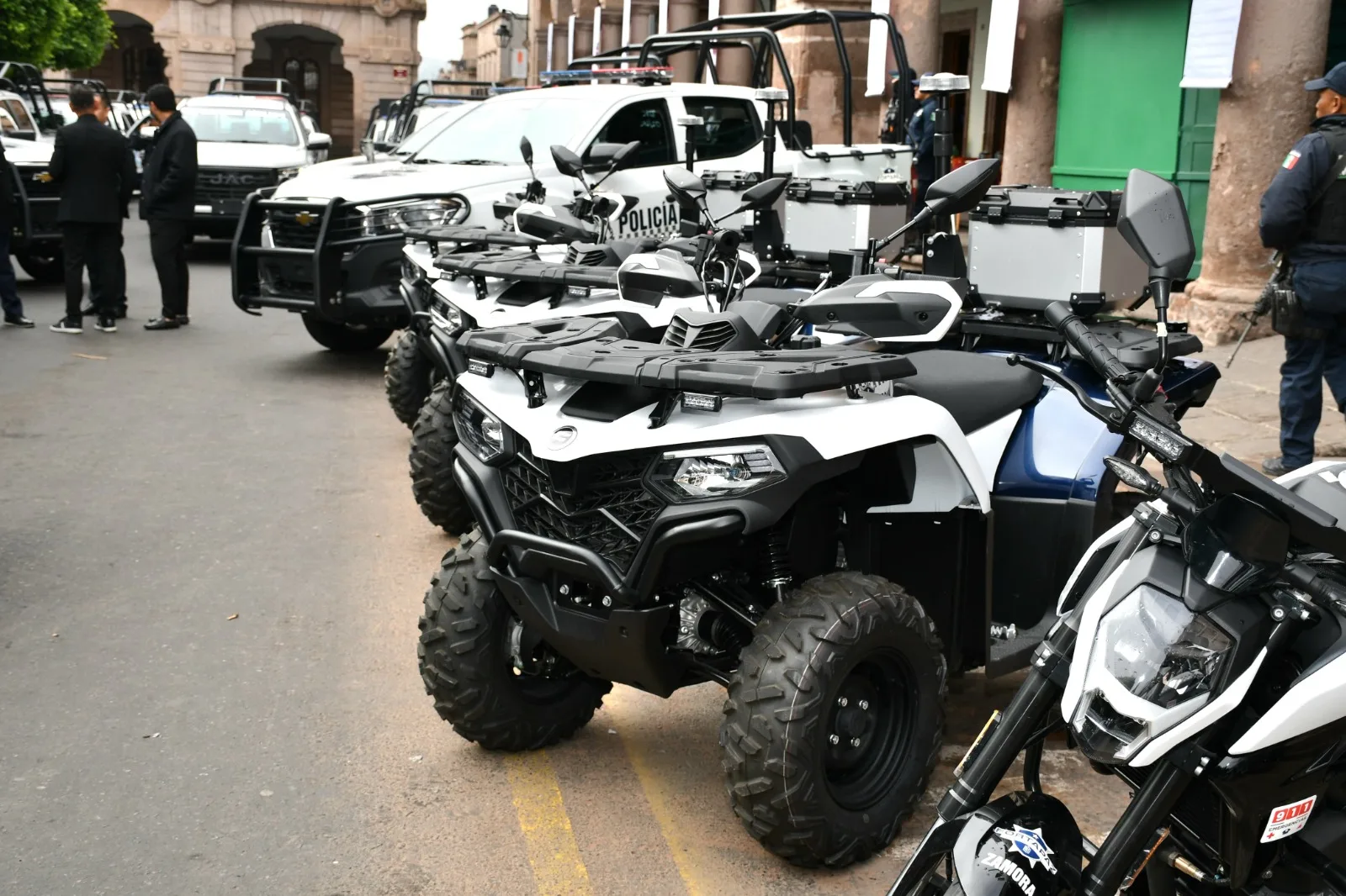 Se trata de 23 camionetas, seis automóviles, 38 motocicletas, 10 mil 380 uniformes para elementos de la Secretaría de Seguridad Pública (SSP) y 4 mil 240 para agentes municipales y de comunidades, mil 305 mobiliarios de oficina, y 11 sistemas de vigilancia; así como 2 mil 657 accesorios para equipamiento de los cuerpos de seguridad, como cámaras de solapa, guantes tácticos, lentes tácticos, y equipo antimotín, entre otros.