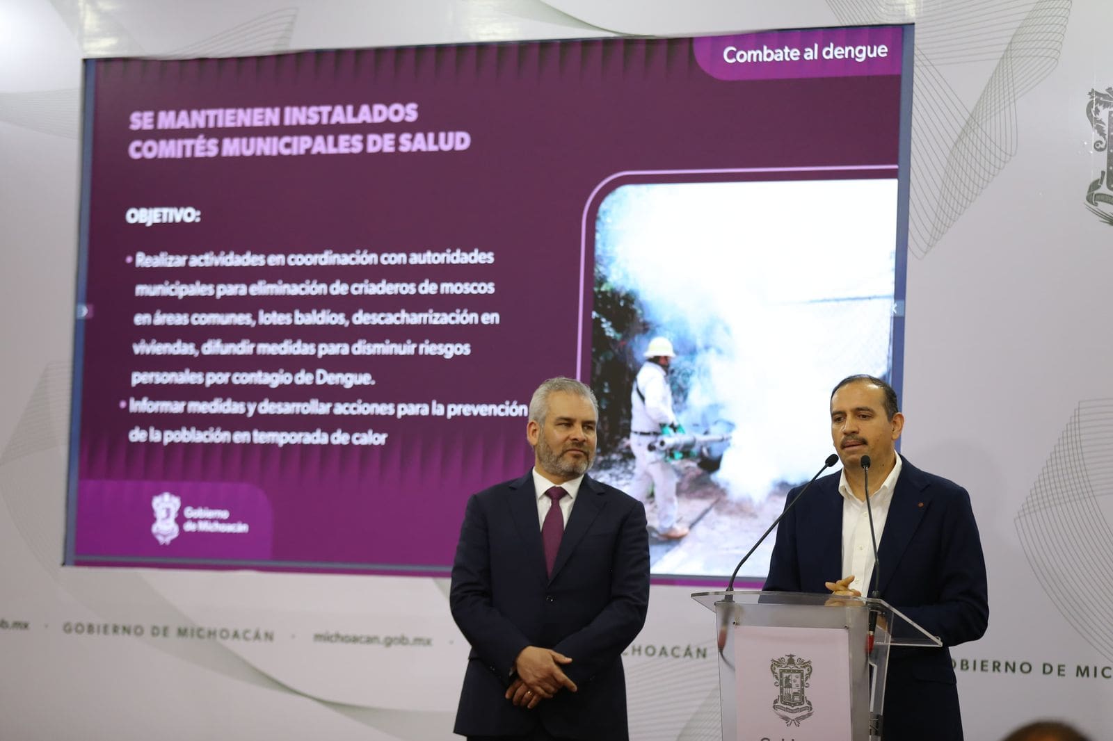 Morelia, Michoacán, 29 de abril de 2024.- Michoacán no baja la guardia en el combate al dengue y de enero a la fecha se han fumigado 96 mil 28 hectáreas de calles, baldíos, orillas de ríos, panteones, escuelas y viviendas, principalmente en los municipios de Huetamo, Tzitzio, San Lucas, Nocupétaro, Morelia y Lázaro Cárdenas, donde se concentra el mayor número de los 587 casos que se registran hasta el momento.